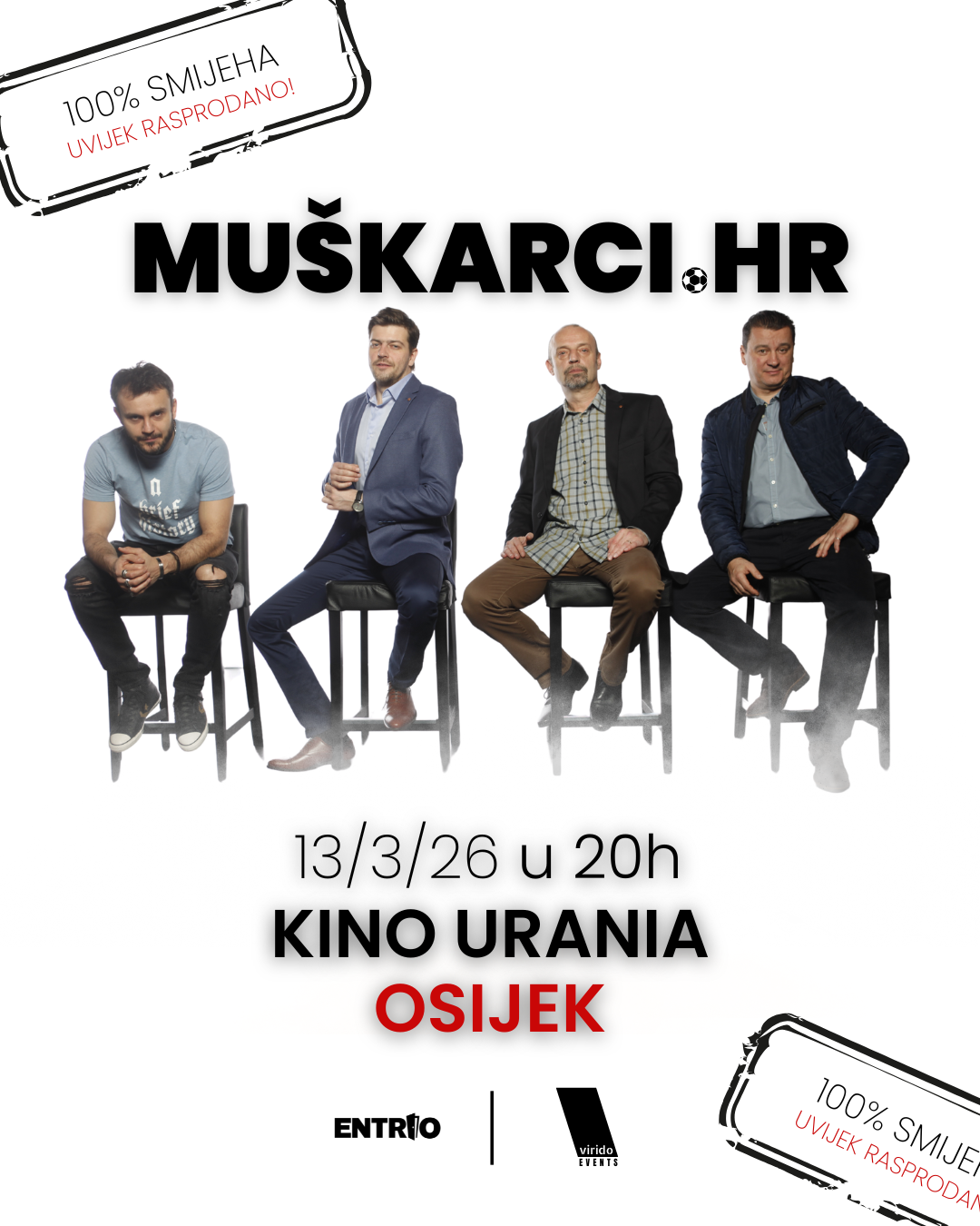 Predstava Muškarci.hr vraća se pred osječku publiku nakon duže pauze — ovo je treća izvedba u Kinu Urania, a nakon posljednjeg gostovanja prije nekoliko godina publika ponovno ima priliku uživati u ovom kazališnom hitu koji duhovito i britko raskrinkava muške stereotipe i svakodnevne situacije u odnosima sa ženama.